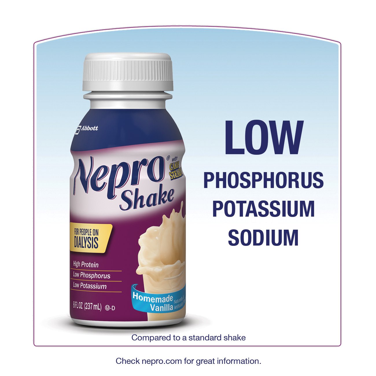 - Amazon.com: Nepro Therapeutic Nutrition Shake, Vanilla, 8 ... : A Higher Protein Intake Is Needed To Replace Protein Lost During Dialysis And To Help Keep You Well Nourished And Healthy.